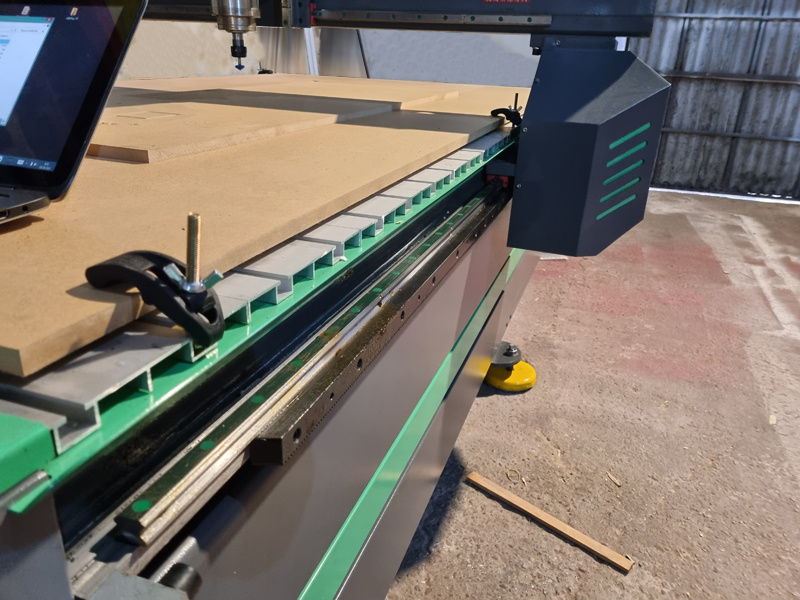 - MESA DE TRABAJO: PVC y aluminio con ranurado en T (Opcional cama con vacío)