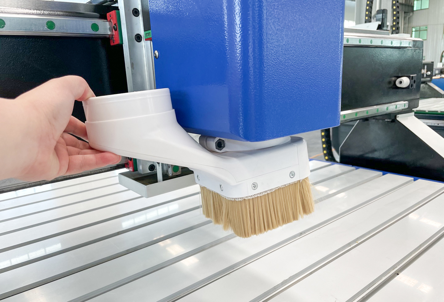– Sistema de vacío integrado para la fijación de materiales livianos. En este último caso, es necesario incluir una Bomba de Vacío (opcional) para su funcionamiento.